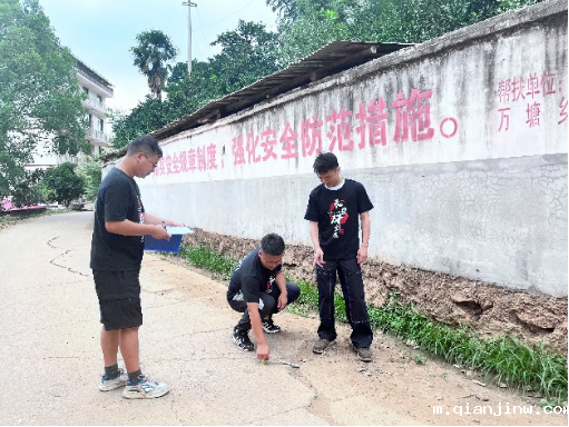 为服务乡村基础设施建设,实践团针对万塘乡乡村道路开展交通运行安全宣传和病害检测工作。顶着炎炎烈日,实践团成员走了四五公里路程,测量了二十几处路段,收集了大量数据。在了解当地道路现状的同时,也帮助当地村民进一步增强道路安全意识。