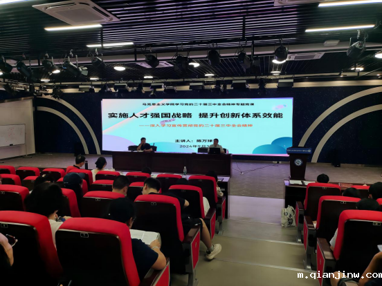 9月3日,马克思主义学院举办学习贯彻党的二十届三中全会精神的专题党课活动。本次活动的目的是深入理解和宣传全会精神,提升教师的政治意识和理论水平。会议由张明海院长主持,学院党委书记陈万球主讲,学院全体教师参加。