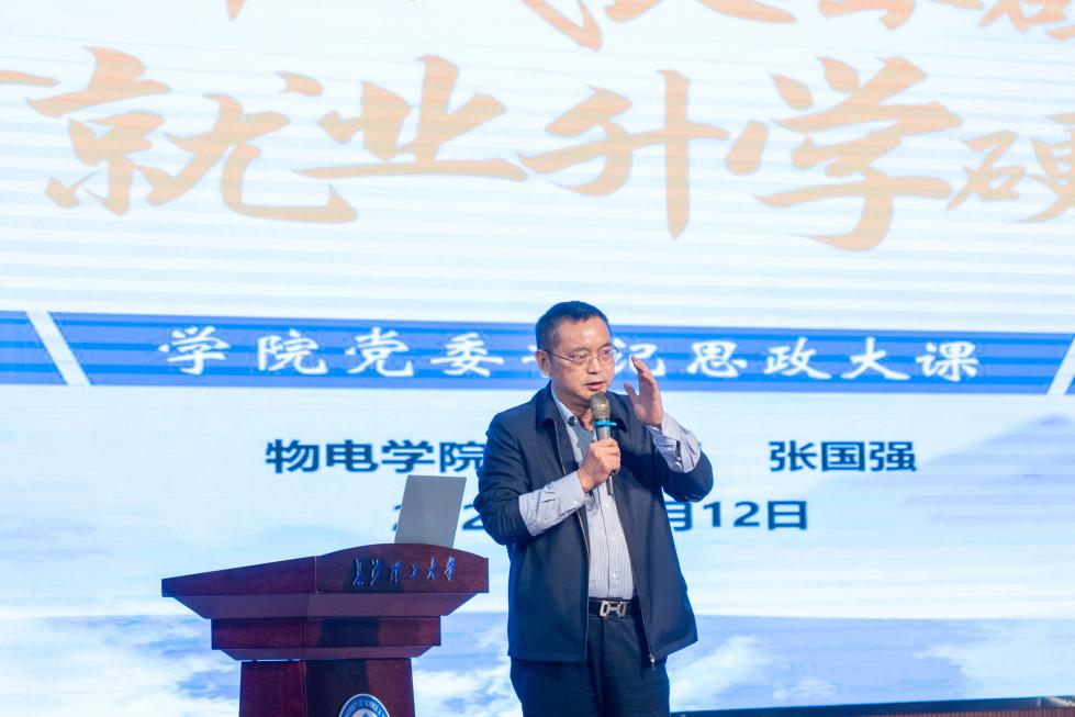 2025 年11月12日,物电学院于金盆岭5号教学楼大礼堂举办第二届“物电之光”榜样宣讲暨25级年级大会,物电学院党委书记张国强、党委副书记叶正芳、关工委常务副主任李新…
